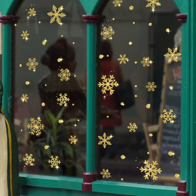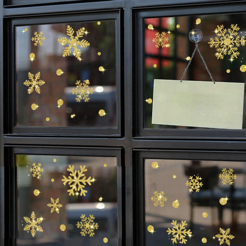 Рождественское украшение статические Золотые Серебряные Снежинки новые золотые серебряные Пудровые снежные наклейки новогодний декор оконные стеклянные наклейки