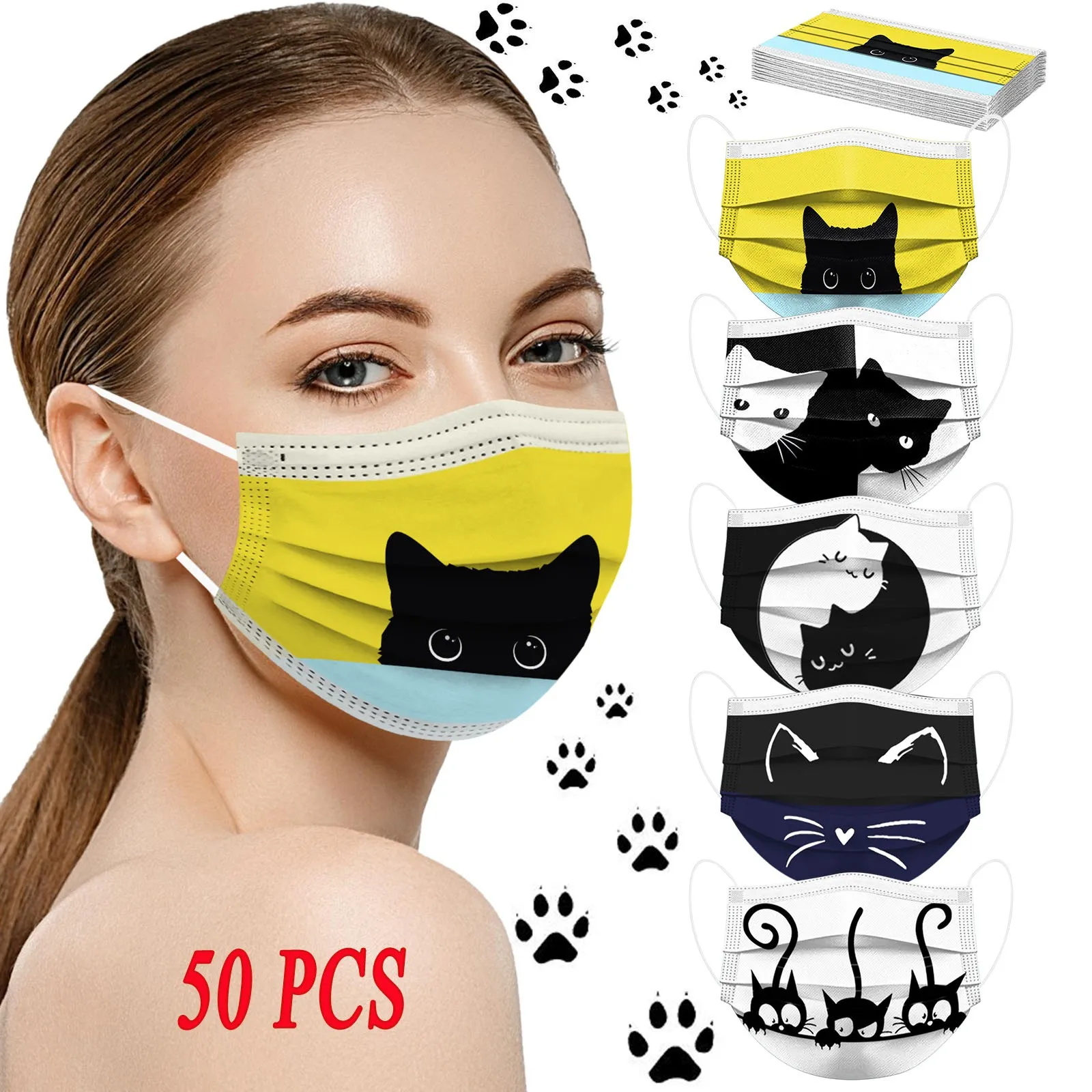50 шт. взрослых мульти-принтами кошек мультфильмов дышащий 3-Слои одноразовые маски