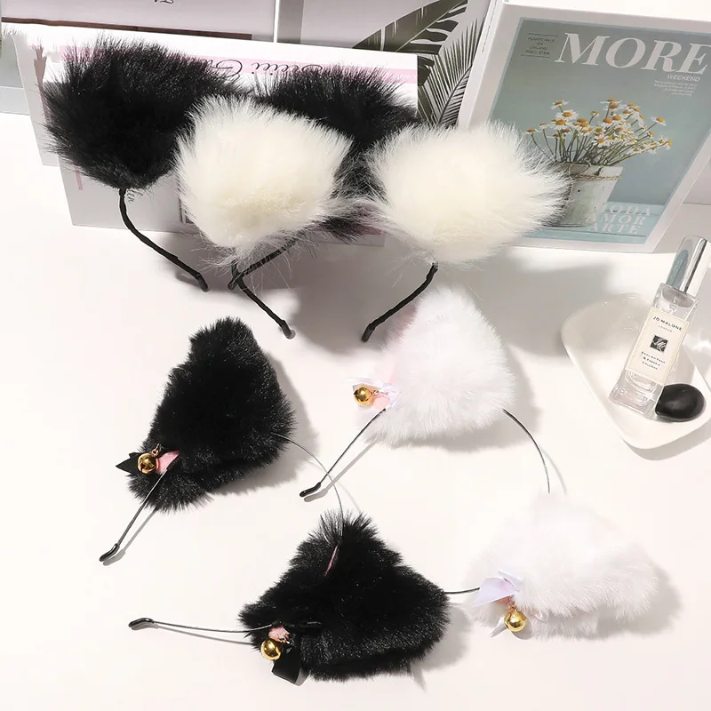 Женская Реалистичная длинная пушистая повязка на голову с кошачьими...