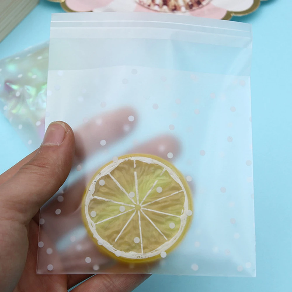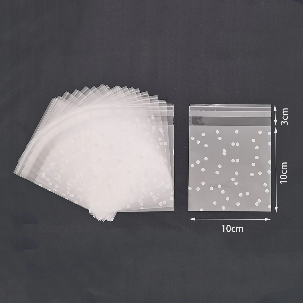 100 шт., пластиковые прозрачные самоклеящиеся пакеты в горошек