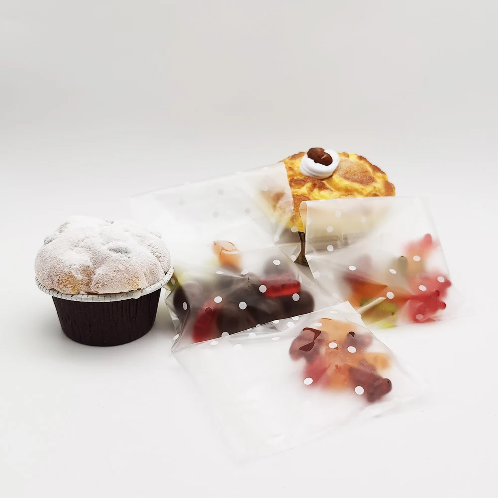 100 шт., пластиковые прозрачные пакеты в горошек для конфет