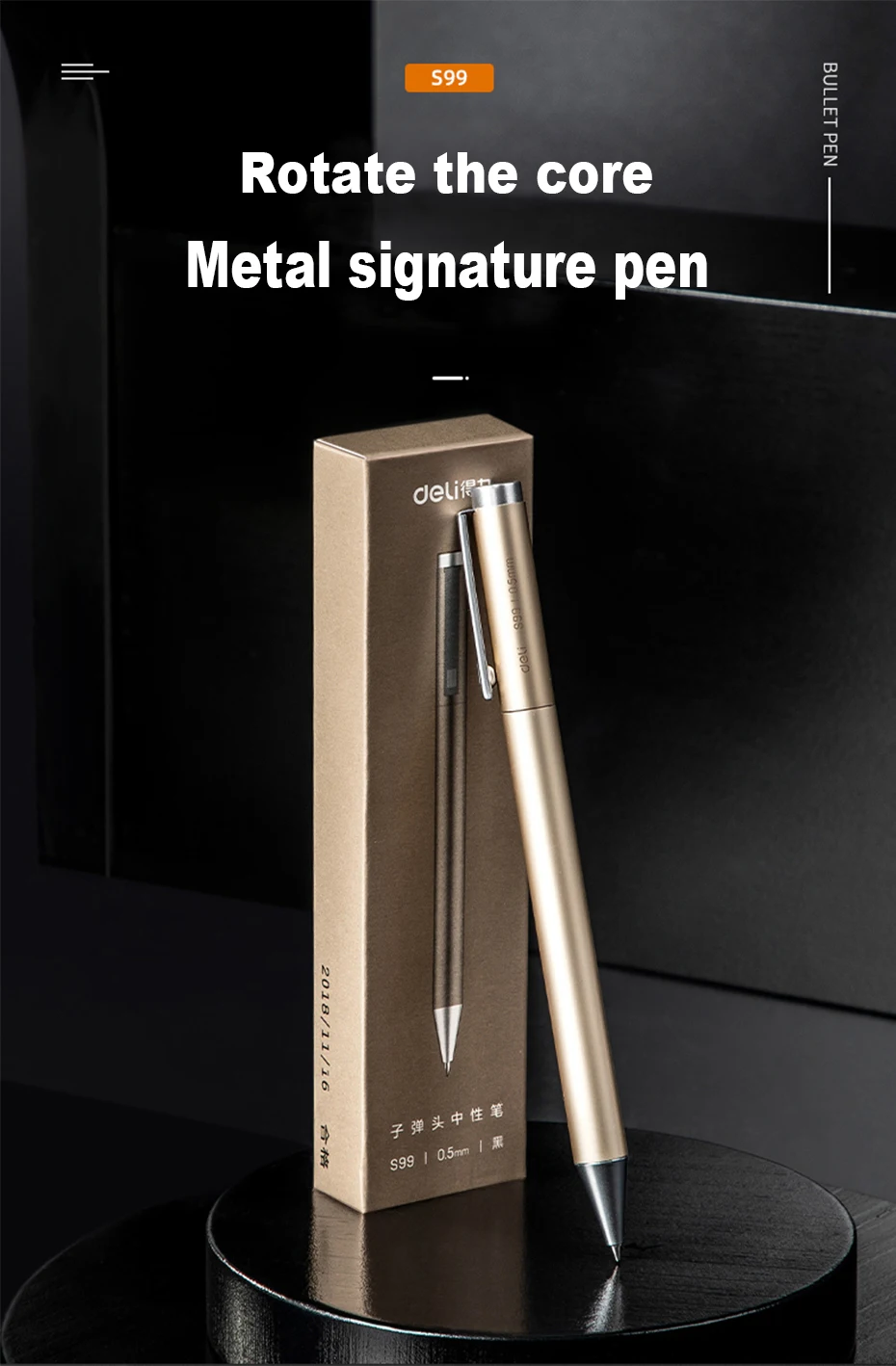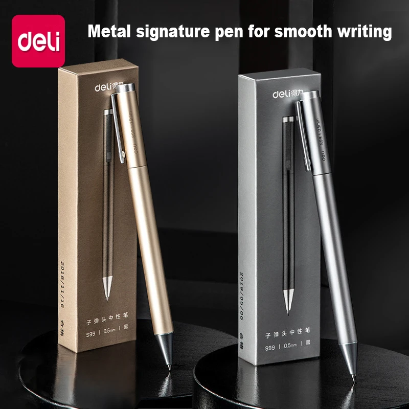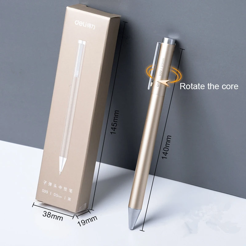 Deli Высококачественная авторучка Matel 0,5 мм, черная чернильная ручка, вращающаяся гелевая офисная деловая ручка, Студенческая Шариковая ручка для письма с пополнением