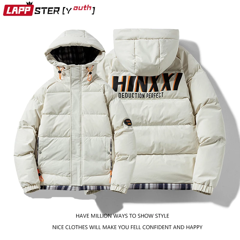 LAPPSTER-Молодежные мужские зимние куртки с капюшоном с надписью 2022 Мужская Корейская уличная одежда повседневные парки Пальто мужское плотное пузырьковое пальто одежда