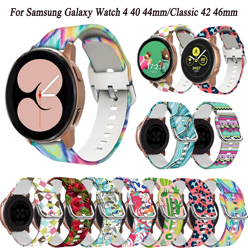 Ремешок силиконовый для наручных часов, браслет с принтом для Galaxy Watch 4 Active 2 40 44 мм, Samsung Galaxy Watch 4 Classic 42 46 мм