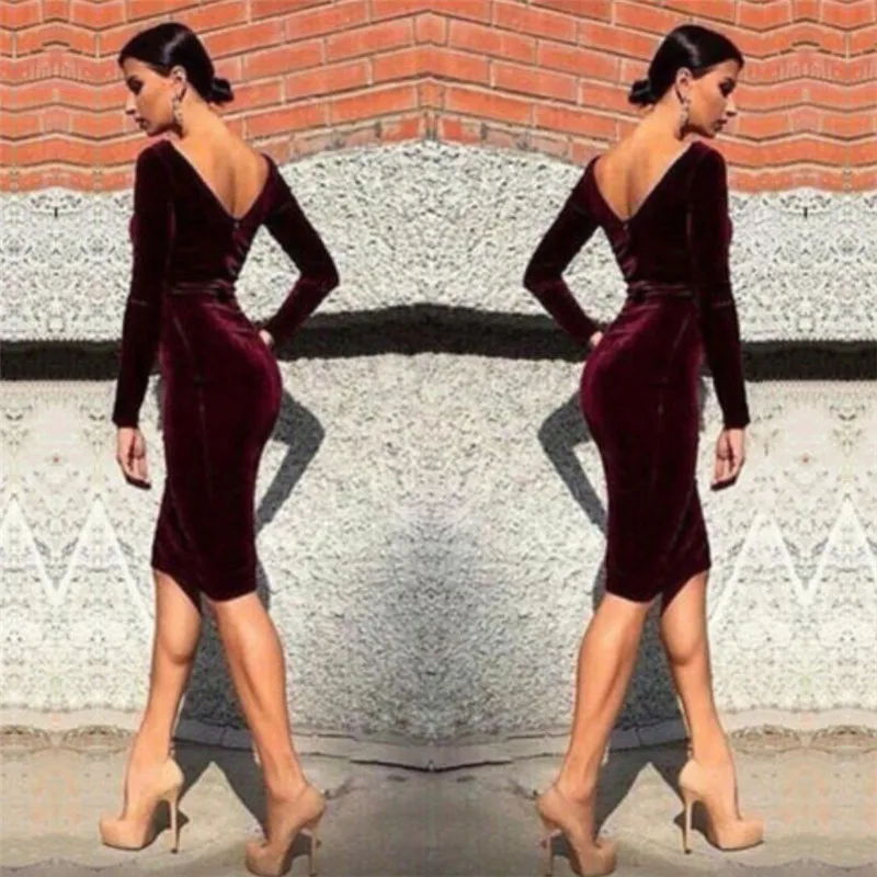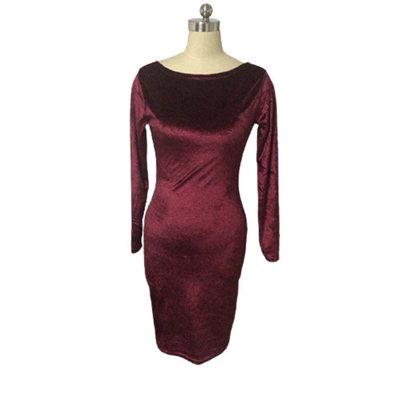 Женское платье на новый год 2022 Золотое облегающее платье из вельвета с длинным рукавом Вечерние облегающие Женские платья-карандаш винно-красного и черного цвета