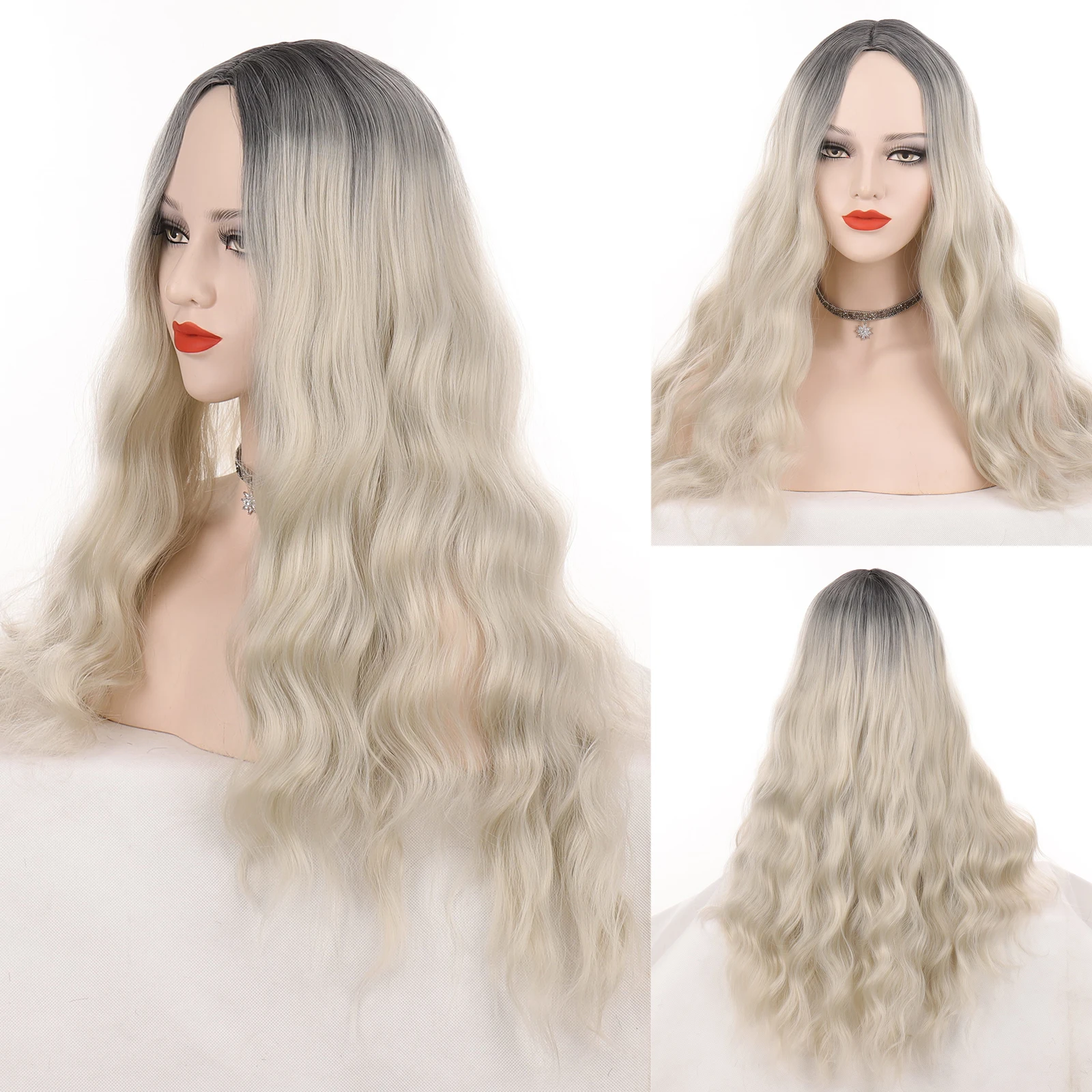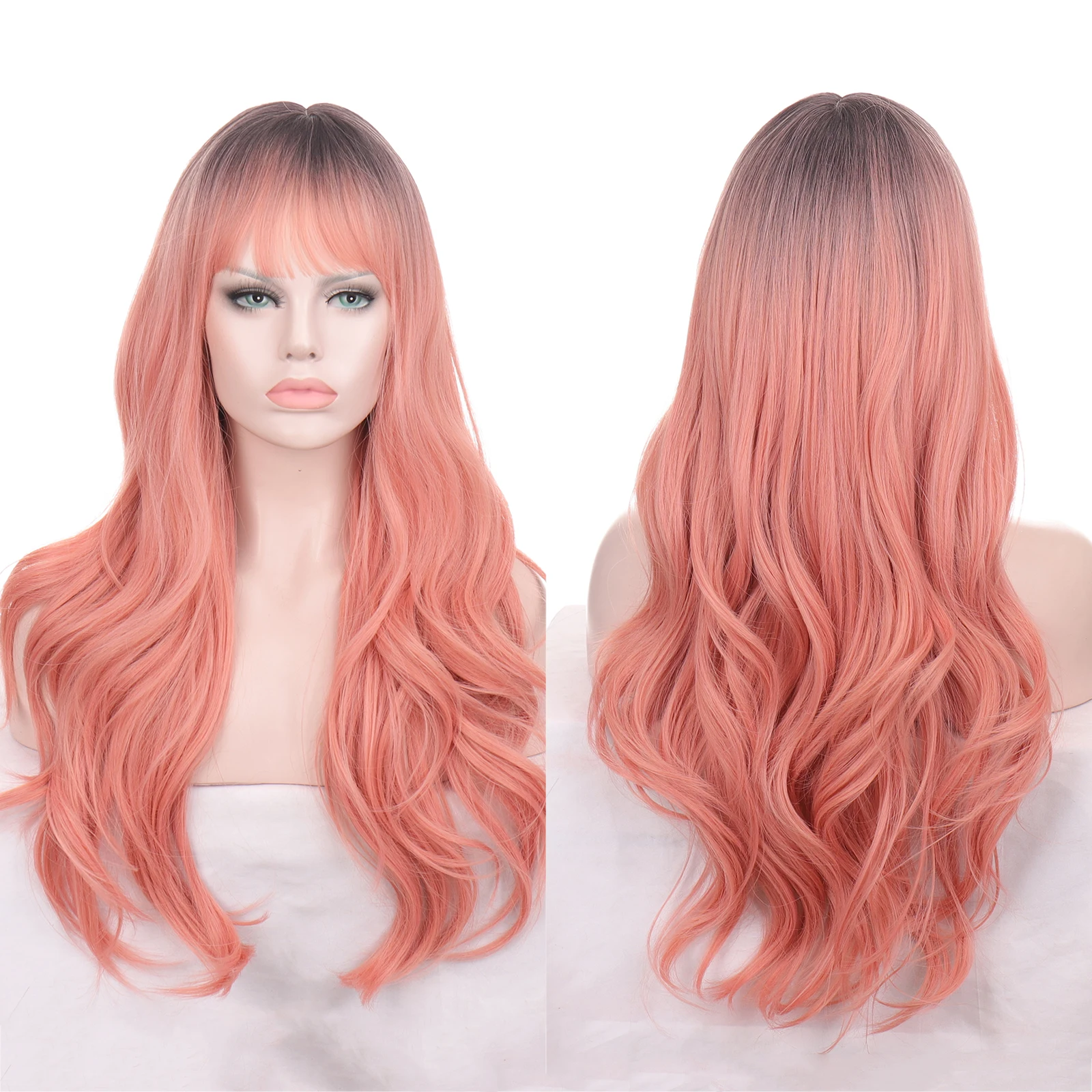 WEILAI длинные вьющиеся розовые термостойкие парики для женщин с эффектом омбре