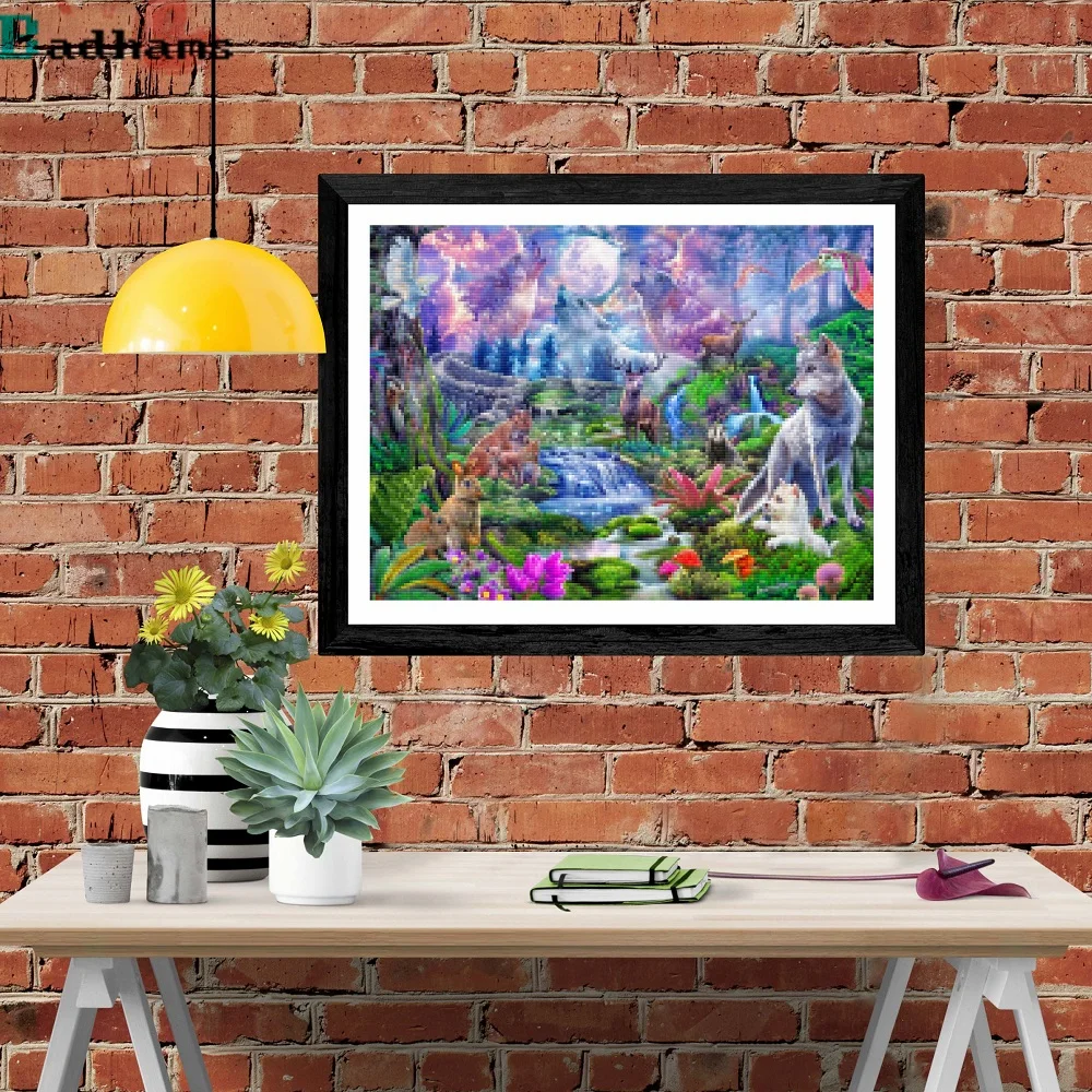 Страна Чудес, дикий лес, весенние животные, волк, кролик, олень, картина 5D, сделай сам, вышивка крестиком Стразы для детской комнаты, домашний декор