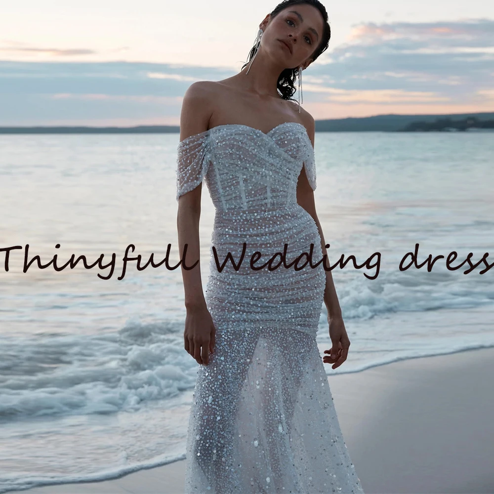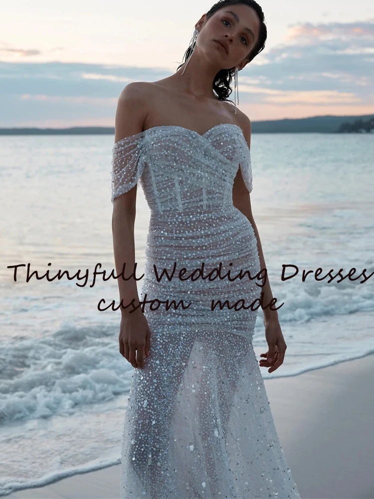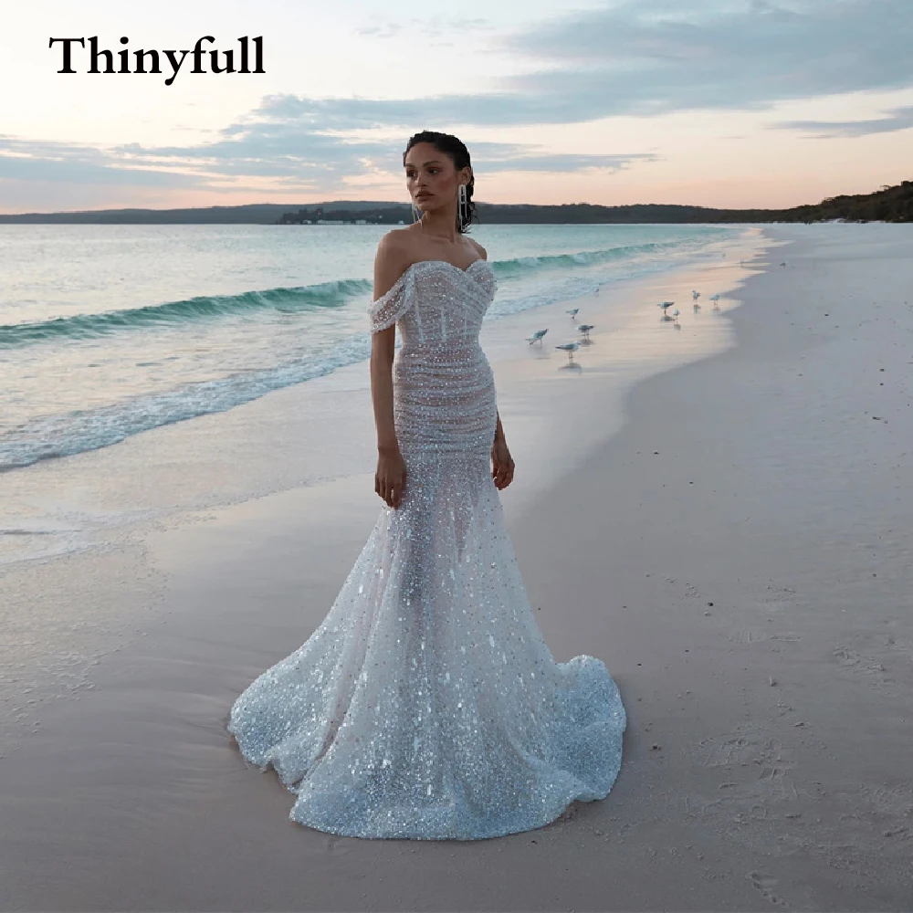 Thinyfull 2022 блестящие пляжные свадебные платья с коротким рукаво...