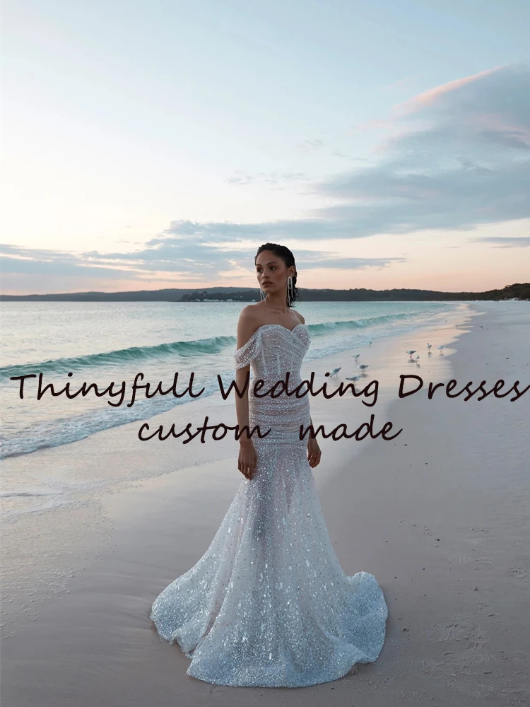 Thinyfull 2022 блестящие Длинные свадебные платья русалки с длинным...