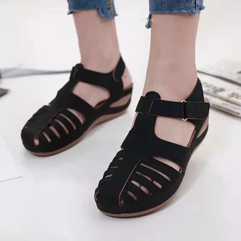 Женские сандалии, летние, удобные, с вырезами по щиколотку, с кругл...
