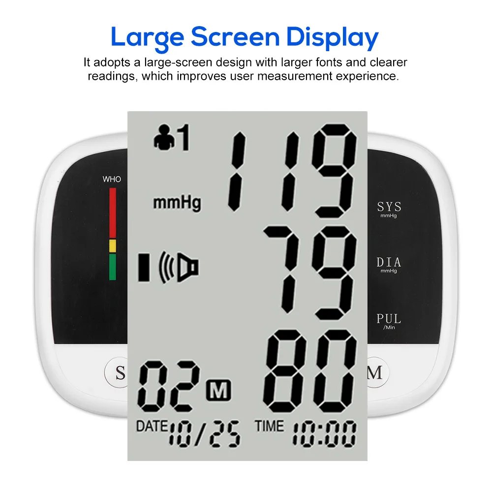 ※ Просты в эксплуатации Measure Измерьте соединение запястья, умное давление HD английская Голосовая трансляция Built встроенный литиевый аккумулятор, может использоваться несколько раз при полной зарядке ※Usb-зарядка, отсутствие загрязнения, защита окружающей среды и быстрая, надежная ※ Более предохранения от давления WHO предупреждающая полоса для определения состояния здоровья артериального давления ВОЗ ※ Аритмии функция 90 90 наборов функций памяти данных для двух человек Query запрос данных памяти в последовательности ※ ЖК-дисплей HD Operation операция автоматически отключается в течение 1 минуты без использования Accuracy точность: Артериальное давление ± 3% Пульс ± 5% Measuring Диапазон измерения: Артериальное давление 0 ~ 280 мм рт. Ст. Пульс 40 ~ 199 раз/мин.