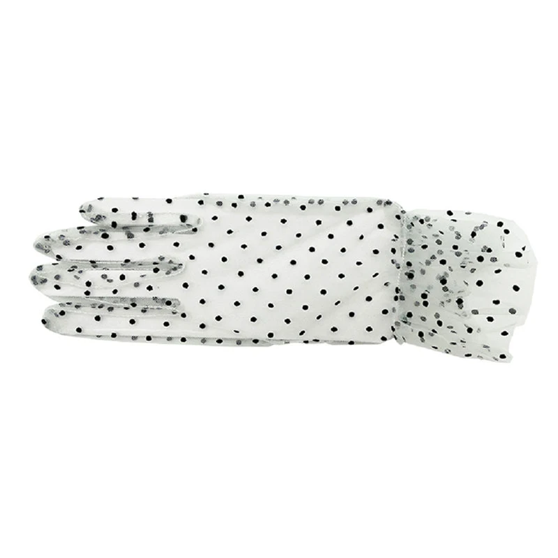 Женские тонкие короткие тюлевые перчатки, 1 пара, эластичные кружевные перчатки с пятнами, Эластичные аксессуары, шелковые короткие перчатки с закрытыми пальцами, новинка на лето