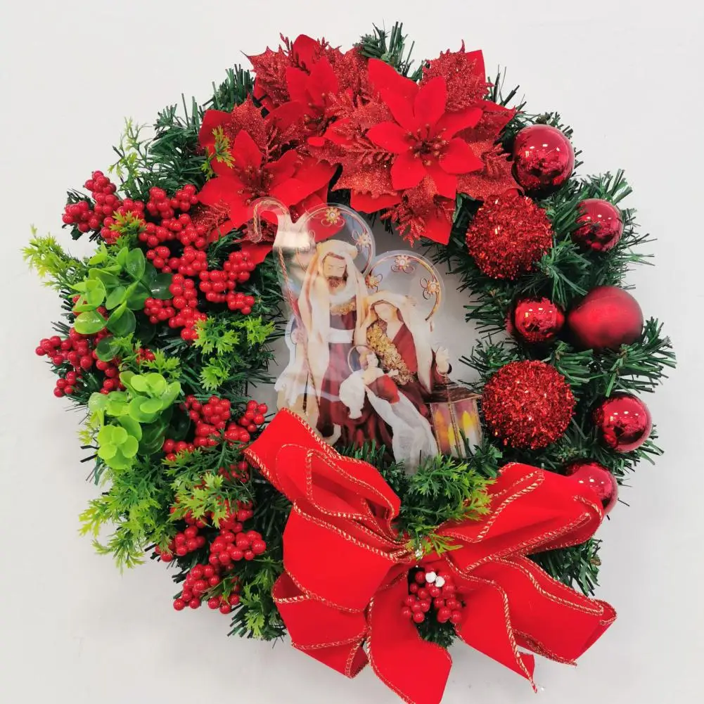 Священный Рождественский венок с огнями, праздничный венок, искусственные подвесные украшения, Настенный декор для входной двери, плоский венок, новый год 2022