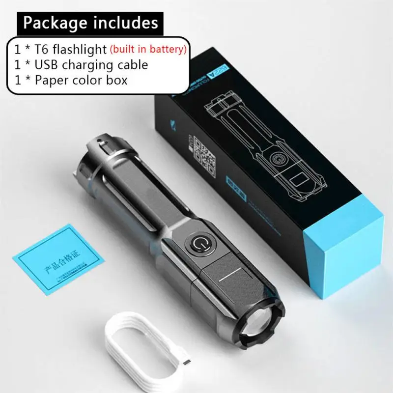 Светодиодный фонарик Zoom T6, мощсветильник портативный Перезаряжае...