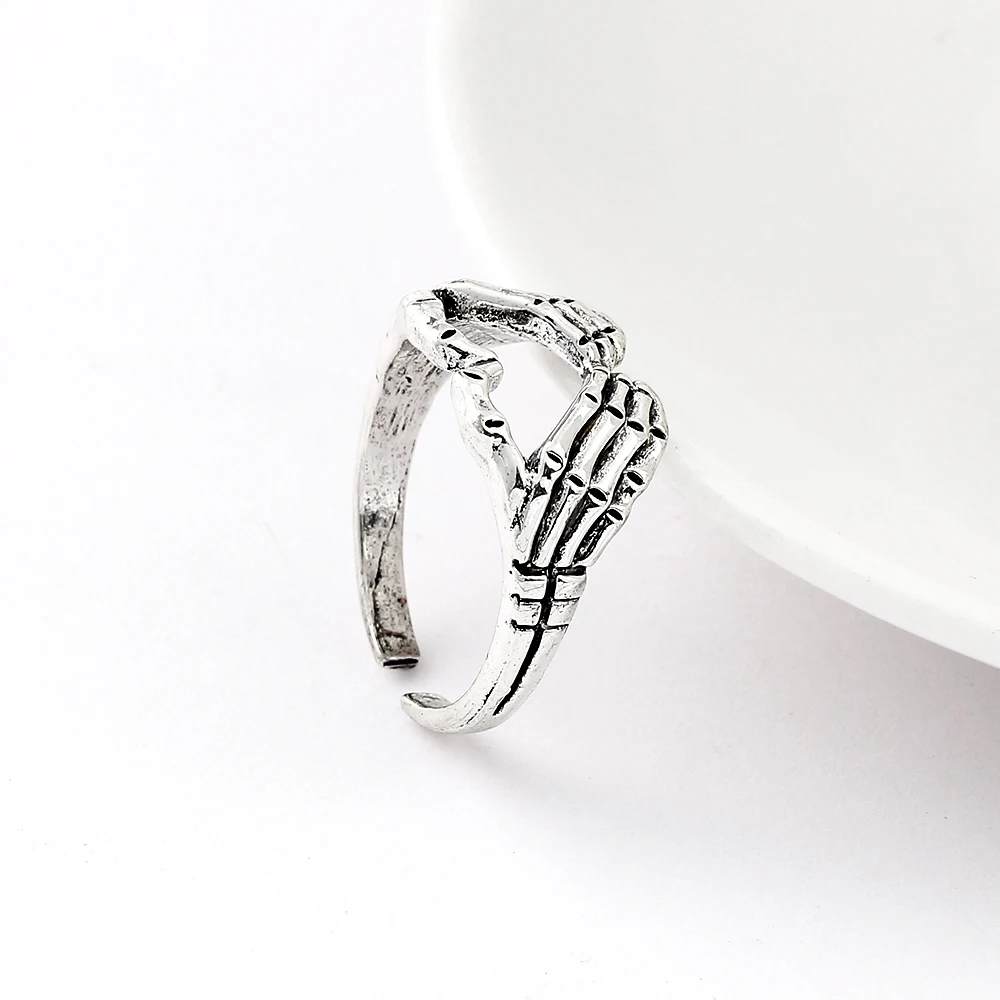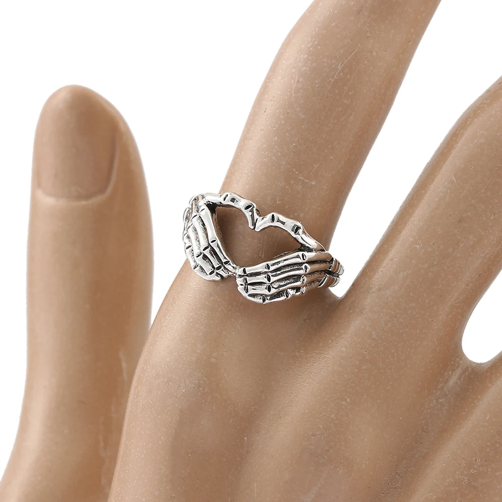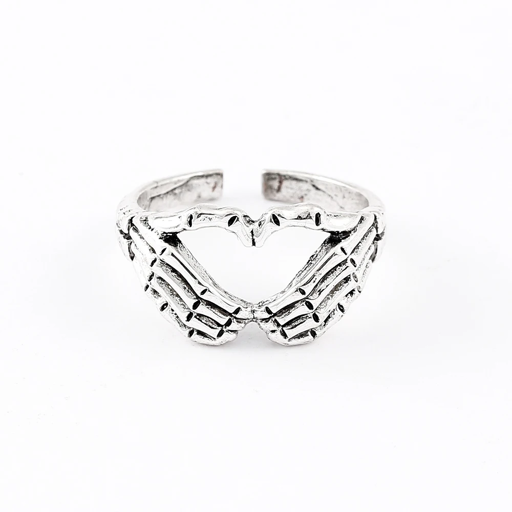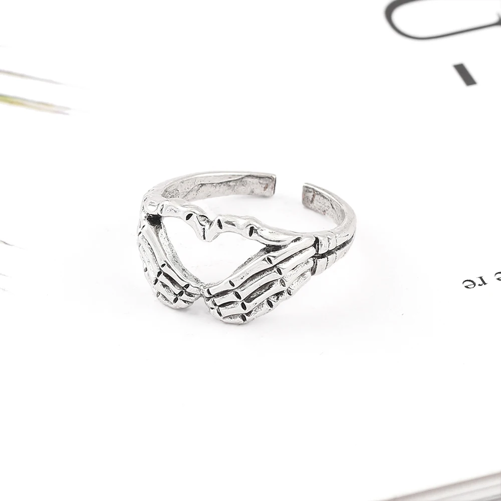 Кольцо в стиле ретро с изображением черепа руки и сердца