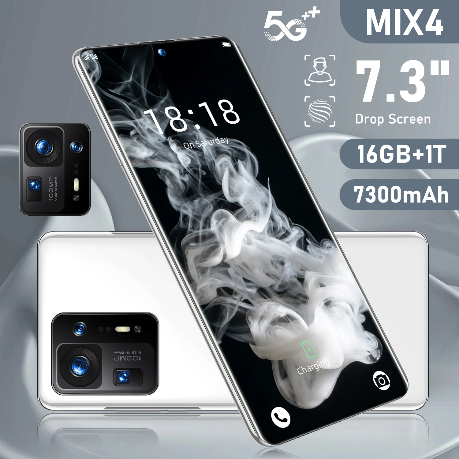 Разблокированный смартфон MIX4, экран 7,3 дюйма, 16 ГБ + ТБ, 7200 мАч, камера 72 МП