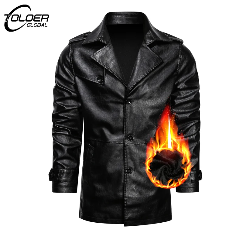 Мужская мотоциклетная кожаная куртка с лацканами, длинная облегающая однобортная ветрозащитная флисовая куртка, уличное пальто размером 4XL для осени и зимы