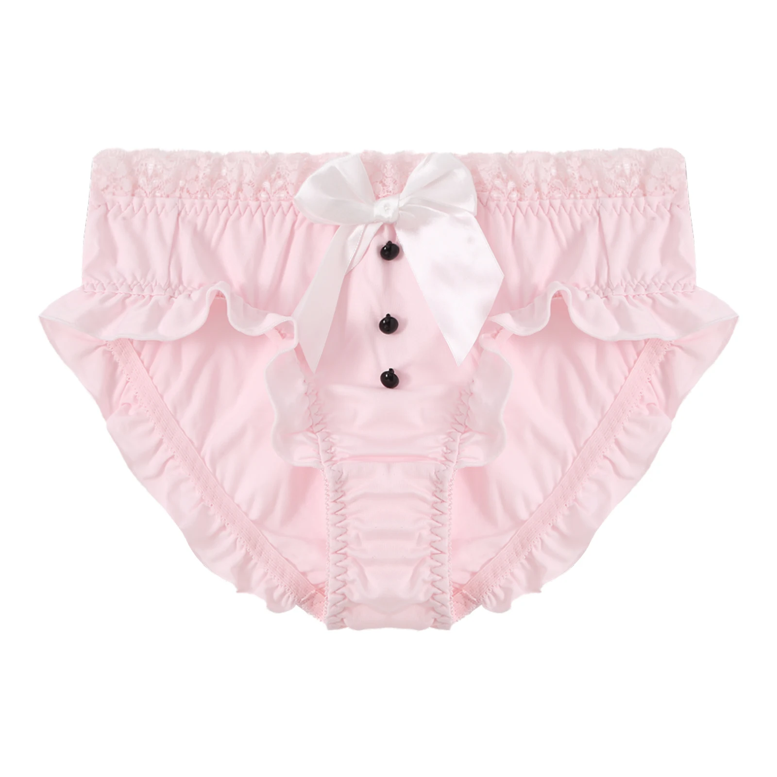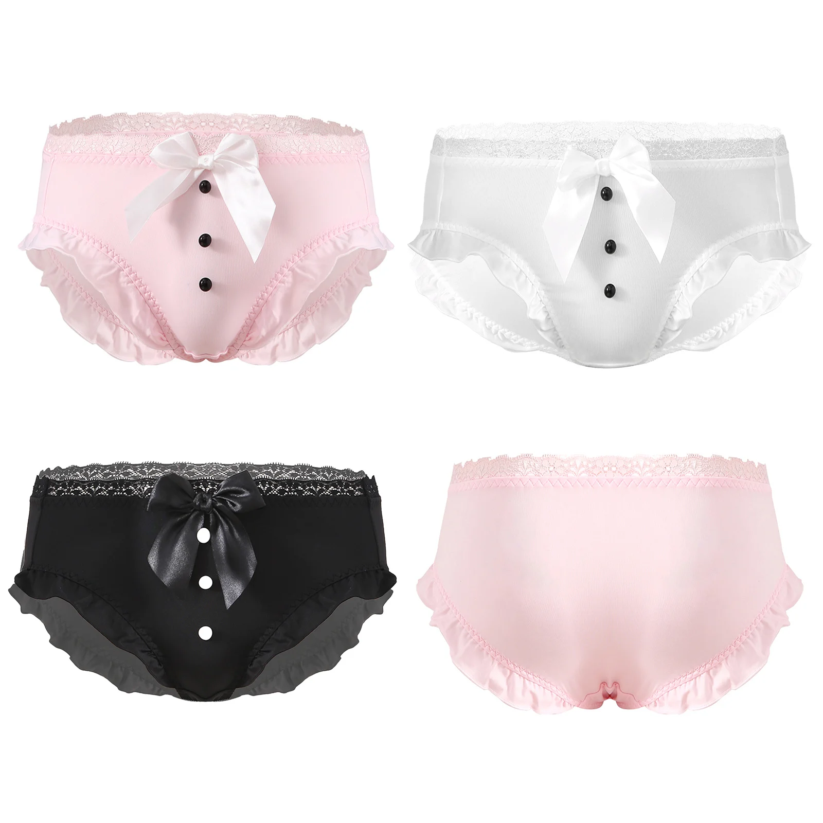 Соблазнительное Мужское нижнее белье, трусы-брифы с милым бантом, нижнее белье с оборками, кружевное нижнее белье с оборками, трусы с низкой талией, эластичный пояс, трусы