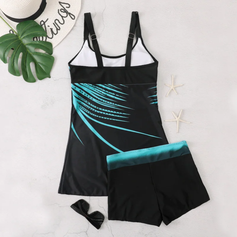 2022 летние купальники большого размера плюс с принтом, женские купальники, танкини, комплекты, Спортивная пляжная одежда для бассейна, купальный костюм из двух предметов, женские купальные костюмы