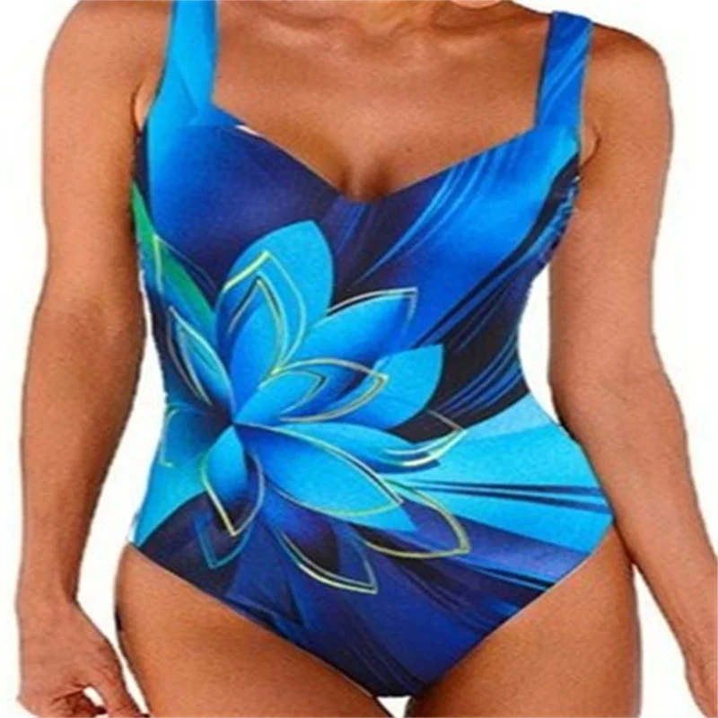 Новый цветочный сексуальный цельный купальник большого размера с пу...