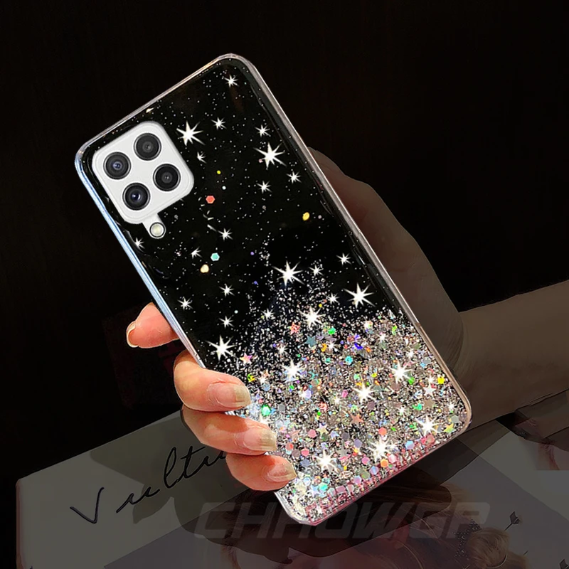 Чехол для Samsung A22, цветные блестящие звезды, мягкие чехлы для телефонов Samsung Galaxy A22, A 22, 4G, 5G A225F, A226B, силиконовый чехол-накладка
