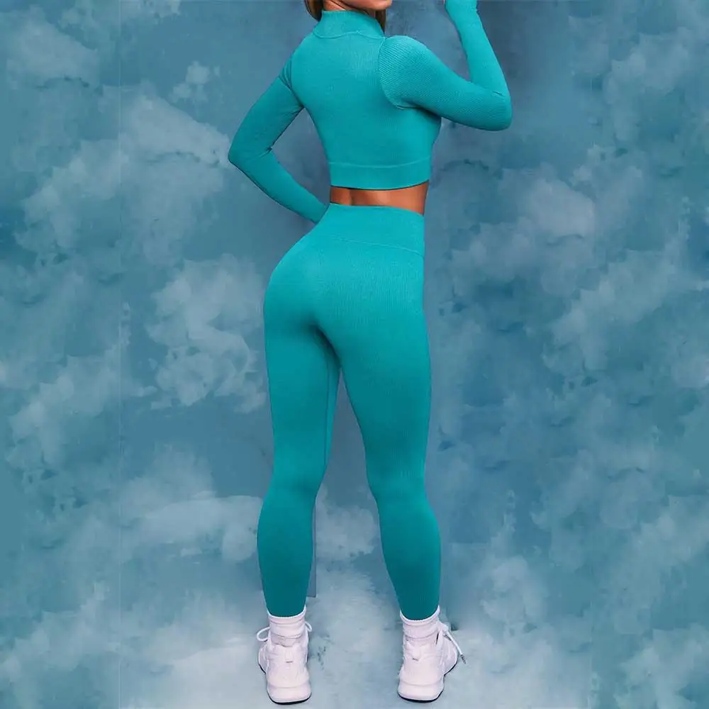 Женский бесшовный комплект для йоги, спортивный костюм из двух предметов, укороченный топ и леггинсы с высокой талией, женская одежда для фитнеса, тренировочный костюм