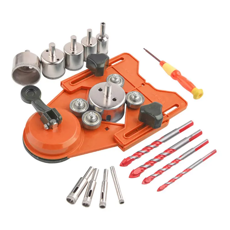 Набор алмазных сверл, комплект из 21 направляющей для сверления отверстий, приспособление для зажима, регулируемый центрирующий локатор, всасывающий держатель, инструменты для стекла, керамики, плитки