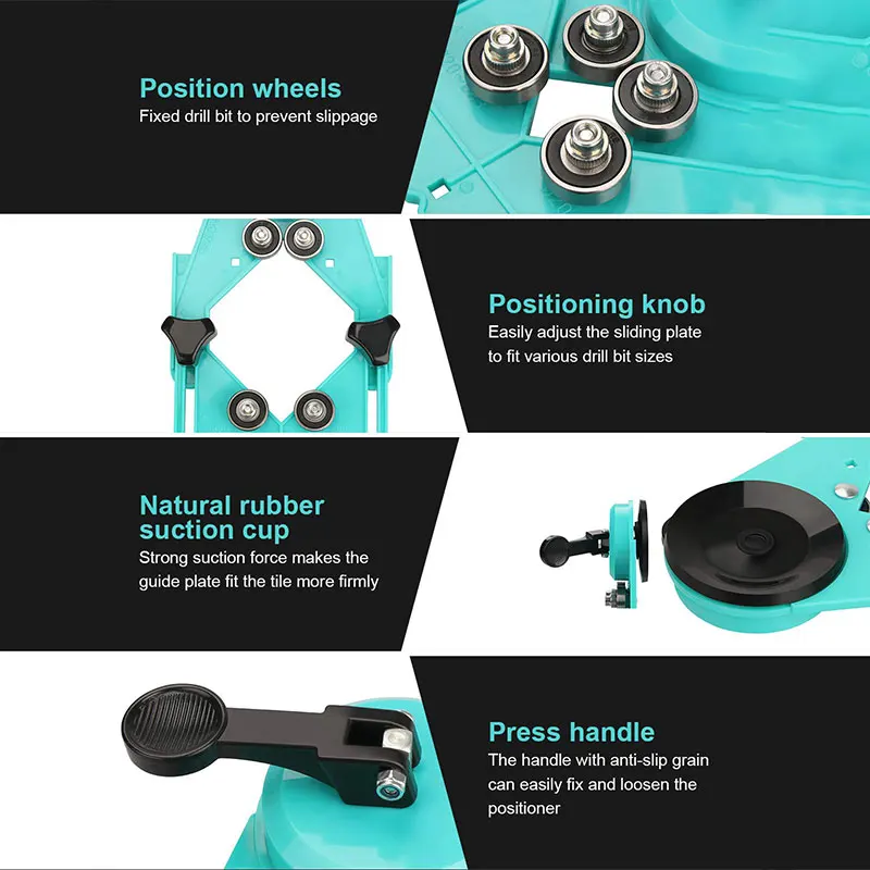 * Съемные шариковые подшипники, 2 режима (3 или 4 крепления подшипников) являются необязательными для вас, просто переверните пластину. Направляющая пила или сверло для сверления прозрачных отверстий на плитке, стекле, мраморе, столешнице, граните и т. д.