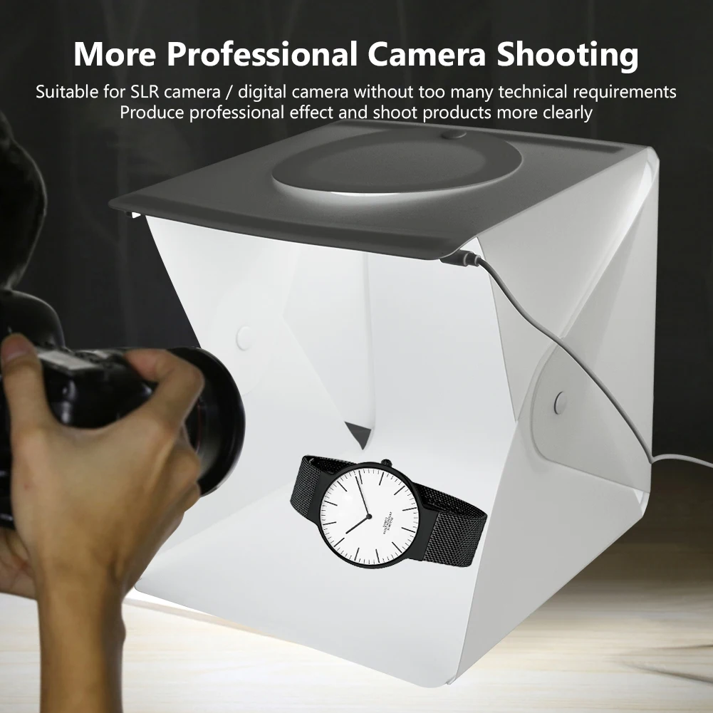 Соберите свою собственную фотостудию в любом месте в течение нескольких минут, вы можете развернуть этот светодиодный лайтбокс-студия и разместить его на любой поверхности, чтобы получить идеальный фон для фотосъемки мелких предметов, фотографирования товаров.