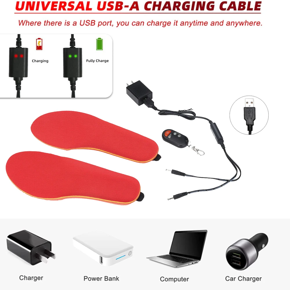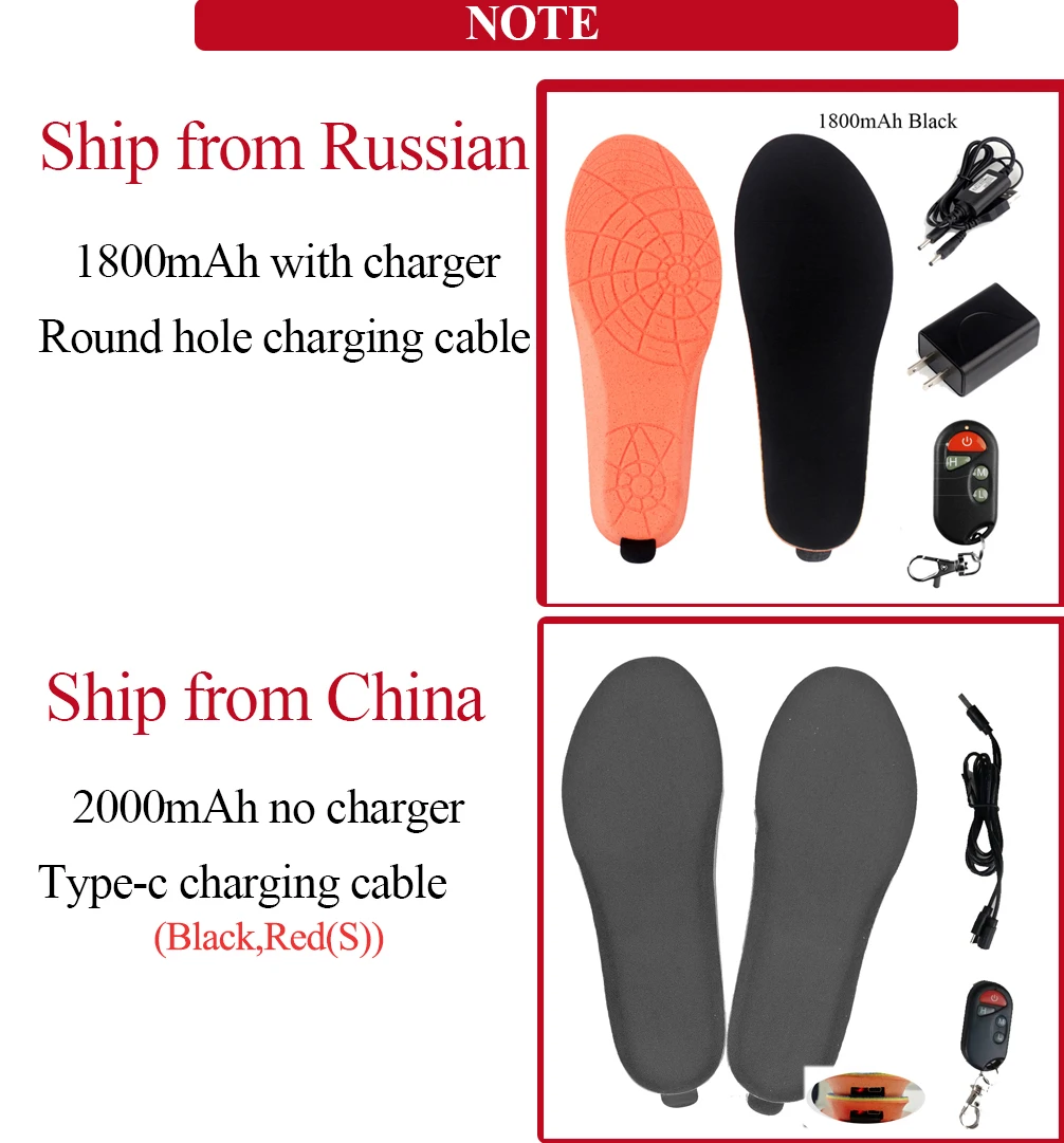 【ADJUSTABLE паясльник с настраиваемой температурой INSOLES】: с многофункциональным пульта дистанционного управления, вы можете свободно регулировать температуру нагрева между 40 ℃ - 60 ℃, прочный, хватает на 4-6,5 часов. Беспроводные стельки с дистанционным управлением могут согревать ваши ноги до подходящих температур. Идеально, чтобы ваши ноги были в тепле зимой для оптимального кровообращения в ногах.【Большая емкость аккумулятора 】: питание от UL/CE сертифицированных перезаряжаемых встроенных аккумуляторов 2000 мАч, нагревательная стелька может нагреваться быстро. Батареи устойчивы к низким температурам и могут быть использованы даже при температуре-20 °C безопасно. Встроенный аккумулятор с емкостью максимальной нагрузки 551lb (250 кг), ценные во время занятий спортом на открытом воздухе.【Мягкий материал и ультратонкая толщина 】: Наши стельки с подогревом изготовлены из высокопроизводительного материала OrthoLite с более сильной эластичностью и лучшей воздухопроницаемостью, мягкие и гибкие. Толщина стельки составляет всего 0,66 дюйма (1,64 см), что занимает меньше места в обуви.【Широкое Применение: отлично подходит для охоты, катания на лыжах, рыбалки, походов, прогулок собак, сноуборда, мотоцикла, верховой езды и спортивных мероприятий. Также прекрасный подарок на День Благодарения, Рождество, Новый год и т. д. стельки с подогревом станут отличным выбором для холодной зимы.【Отделка соответствует размеру и качеству гарантии 】: дизайн унисекс идеально подходит как для мужчин, так и для женщин. Можно обрезать, чтобы соответствовать практически любому размеру обуви и легко помещать в обувь или обувь.Спецификация:Цвет: черный/красныйАккумулятор: 2000 мАч, Li-PolyНагревательный элемент: углеродное волокноТкань: бархатная тканьПлощадь нагрева: передняя часть стелькиРежим нагрева и время работы:Низкая: 39 ℃-46 ℃, работы в течение 6-6,5 часов;Средний: 48 ℃-55 ℃, для детей в возрасте от 5 5,5 часов;Высота: ℃ 55-62 ℃, которые работают на 3,5-4,5 часовРазмер M: 26 см; Подходит для обуви 35-40 EU/5.5-9US;Размер L: 29,5 см, подходит для обуви размера 41-46 EU/9-11US;Чистящие средства: Очистите влажной тканью или щеткой, не стирайте в машине, Не погружайте в воду.Кнопка включения стельки: Длительное нажатие в течение 3 секунд для включения/выключения питания, после включения короткого нажатия для регулировки настройки нагрева.Посылка:1 пара подогреваемых стелек1 X зарядный кабель1 пульт дистанционного управления