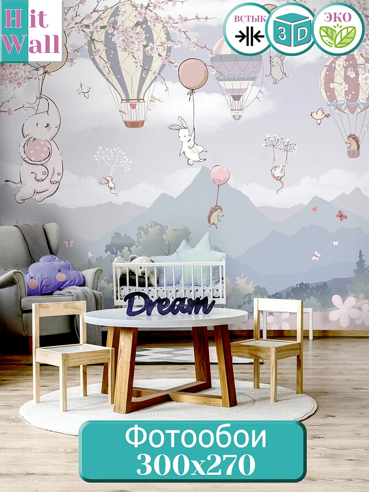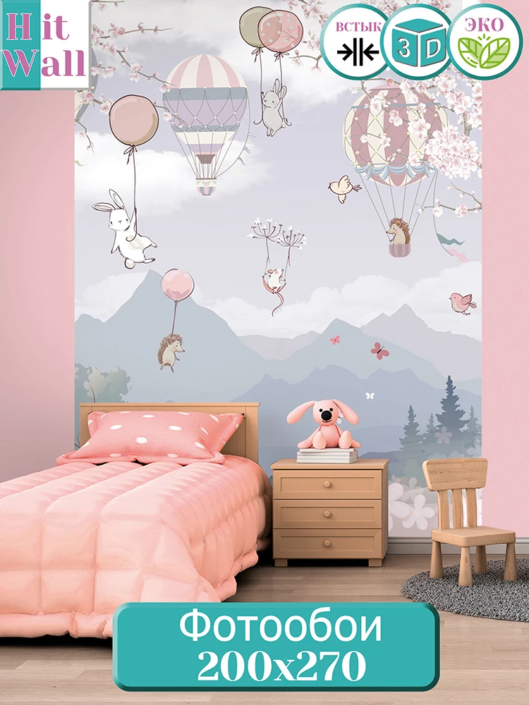 Фотообои Hit Wall 3D на стену флизелиновые детские горы лес воздушные шары для девочки мальчика