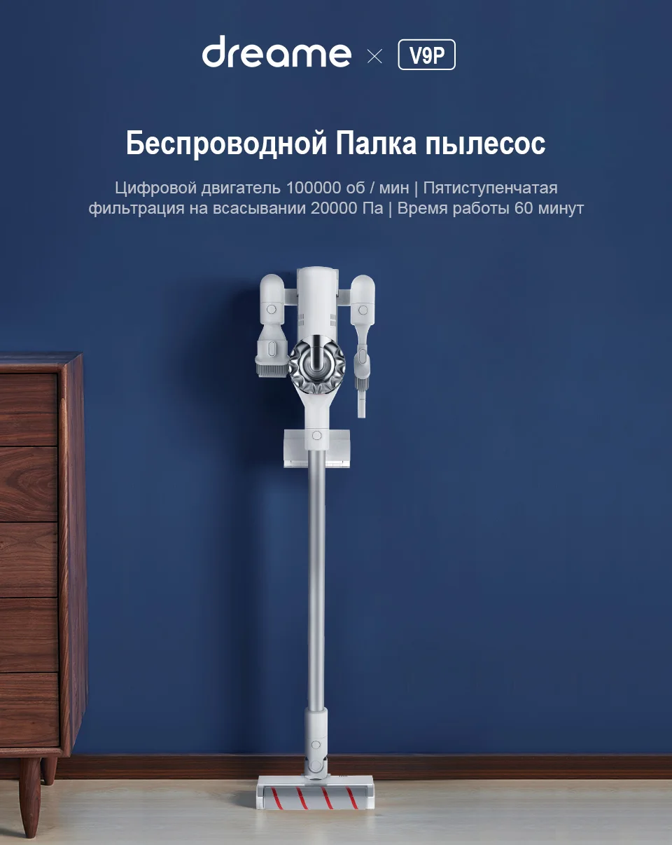 промо кодNEWYEAR1000(11000-1000) Ручной беспроводной вертикальный пылесос Dreame V9 V9P с аккумулятором