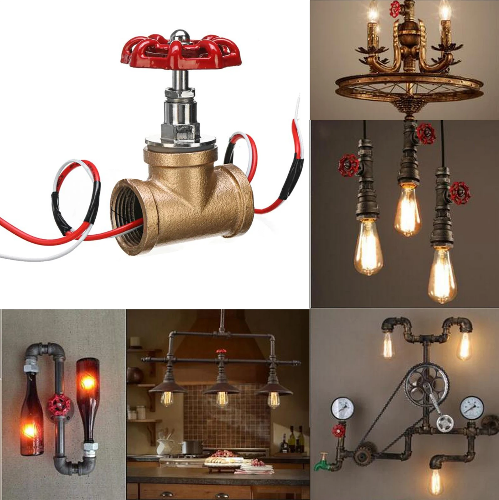 34 дюймовый стоп-клапан, винтажный переключатель в стиле стимпанк с проводом для ламп водопроводных труб, лампа в стиле лофт, железный клапан, винтажная лампа