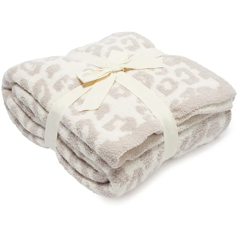 Нордическое полушерстяное искусственное трикотажное одеяло с леопар...