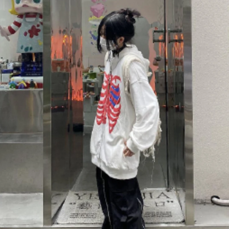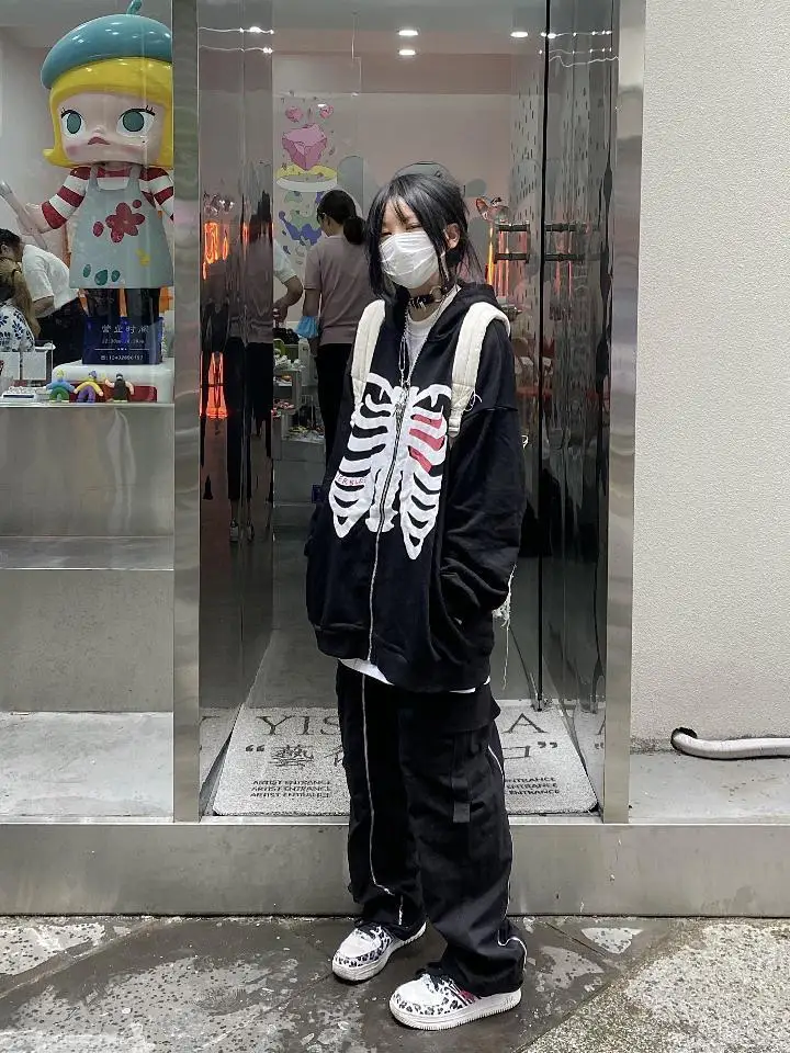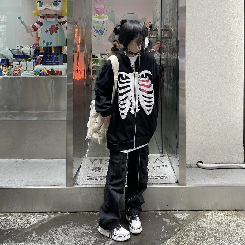 Женская толстовка в стиле Харадзюку, черная толстовка в стиле эмо с длинным рукавом и графическим принтом черепа, Свитшот в стиле панк, корейская мода, одежда в стиле АЛТ-готика, Y2k