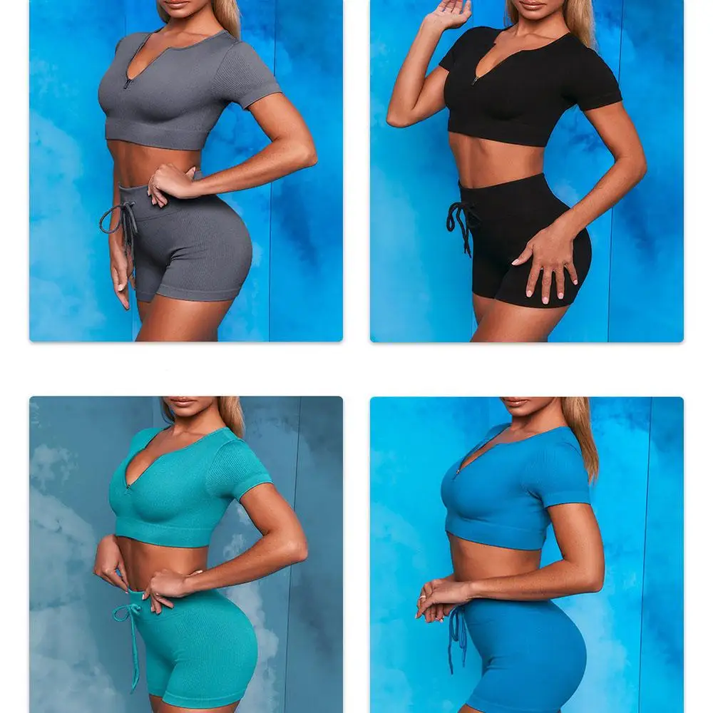 Бесшовный спортивный комплект для фитнеса и йоги, женский спортивный костюм, рубашка пуш-ап с высокой талией, шорты для спортзала, 2 предмета, Женская Спортивная одежда для бега