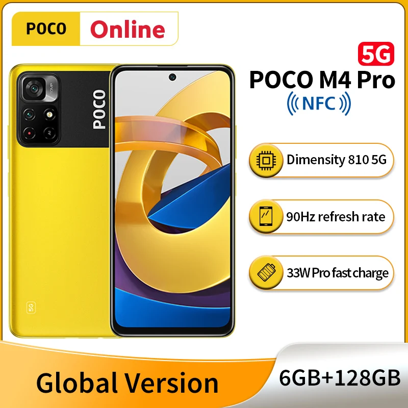 Новый телефон POCO M4 Pro 5G 6 Гб RAM 128 ГБ ROM Dimensity 810 Octa Core 2400x1080 DotDisplay 90 Гц 5000 мАч 33 Вт pro 50 МП NFC