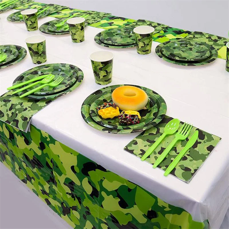 Камуфляжная одноразовая столовая посуда, армейская зеленая скатерть...