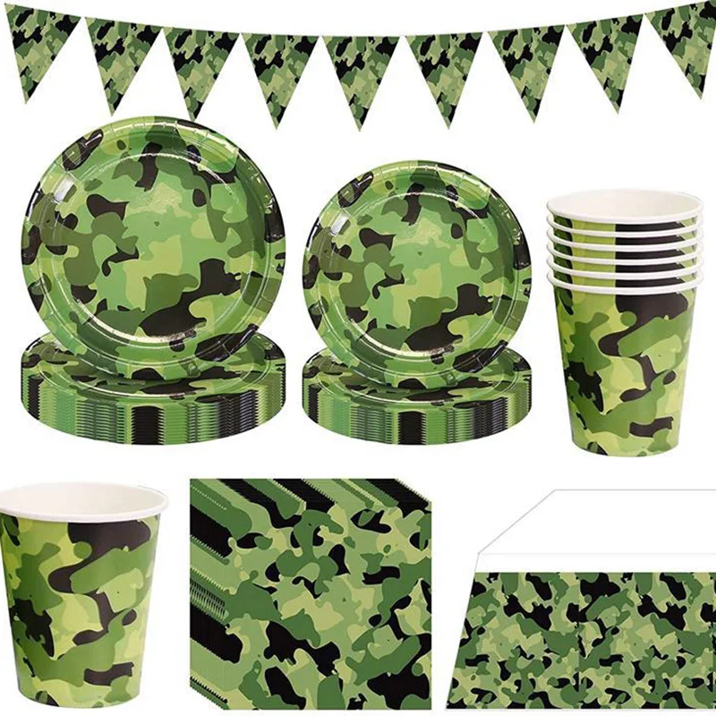 Камуфляжные принадлежности для вечеринок, армейская зеленая клетчатая обеденная тарелка, баннер, скатерть для мальчиков, военный камуфляж, украшения для дня рождения и вечерние ринки