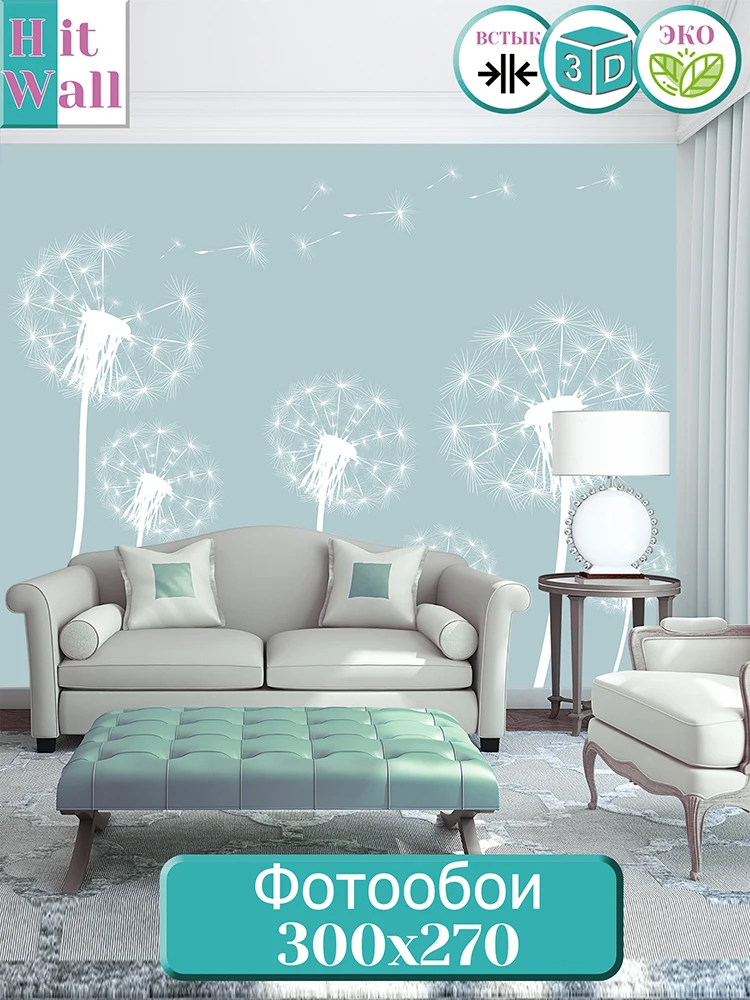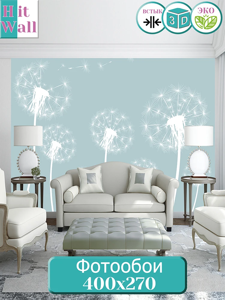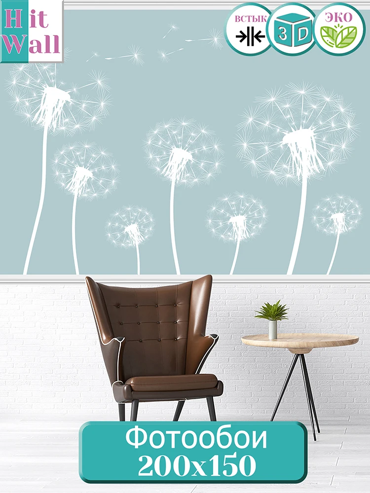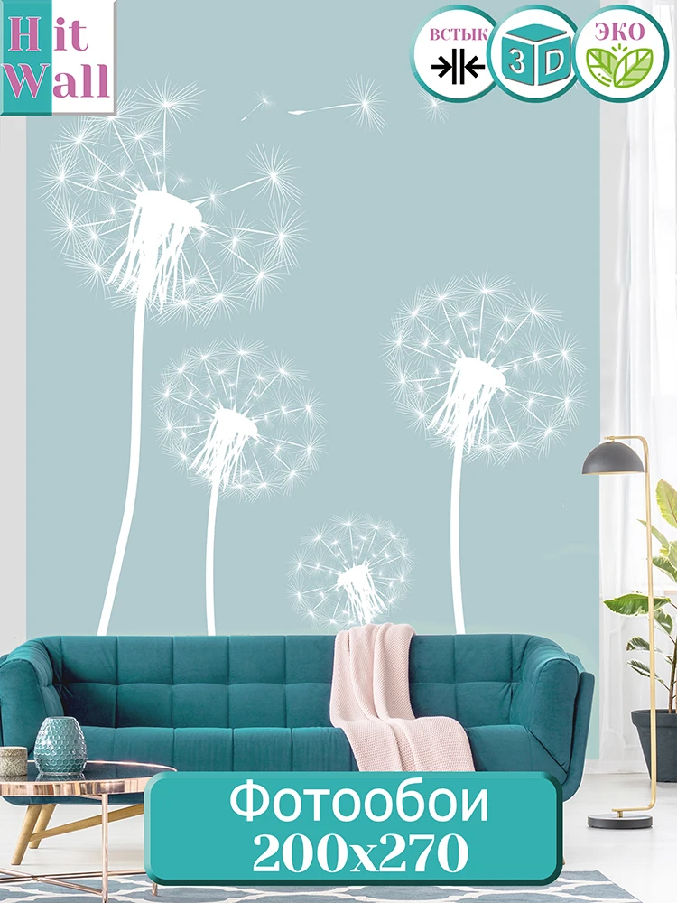 Фотообои Hit Wall 3D на стену флизелиновые одуванчики на голубом стильные минимализм