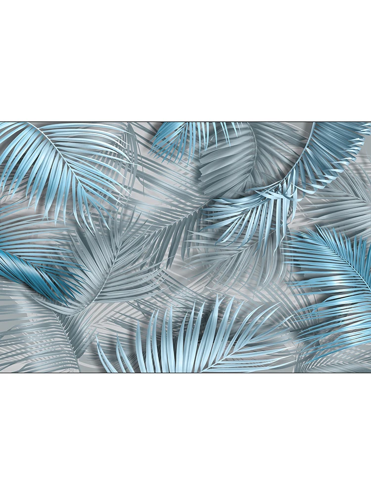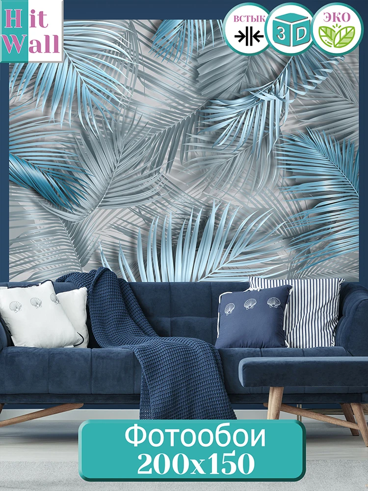Фотообои Hit Wall 3D на стену флизелиновые листья дизайнерские синие на сером