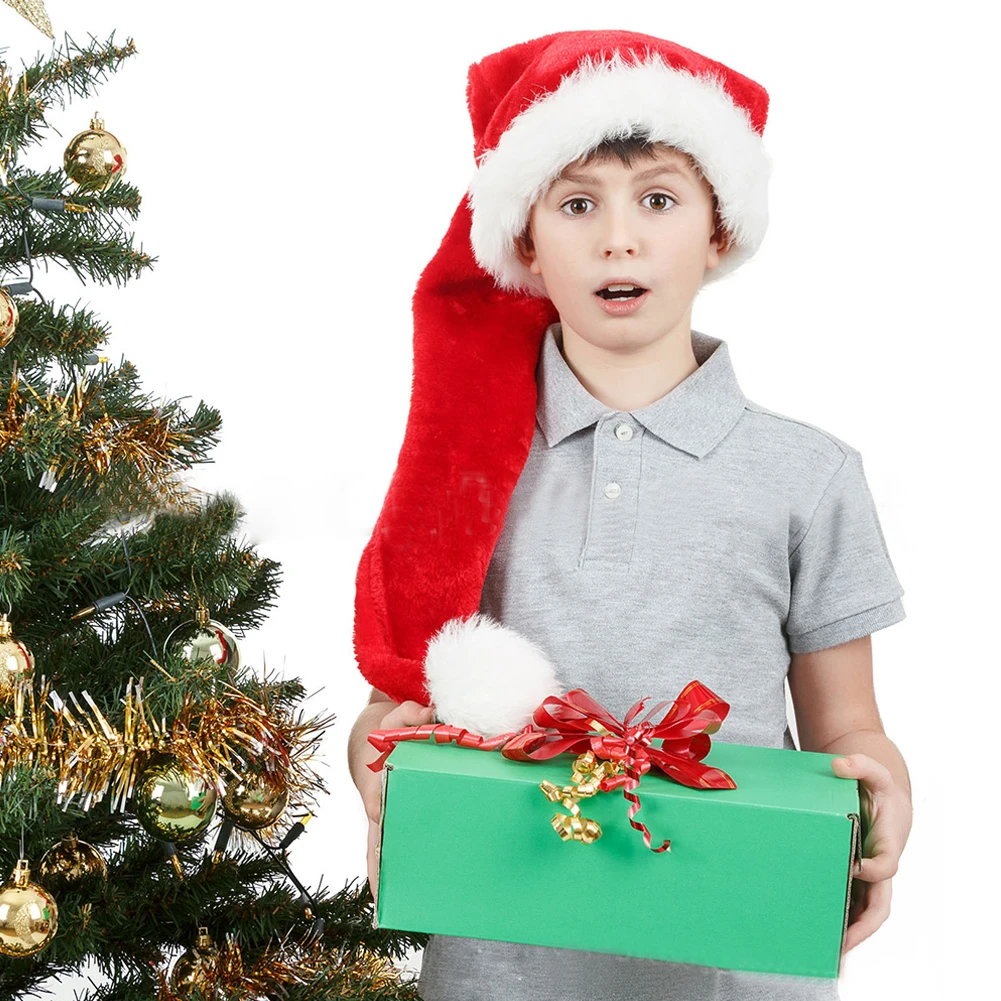 Плюшевые рождественские шапки, Утепленные длинные шапки в стиле шарфа, плюшевые шапки с подкладкой, рождественские шапки, новогодние подарки, праздничное теплое украшение