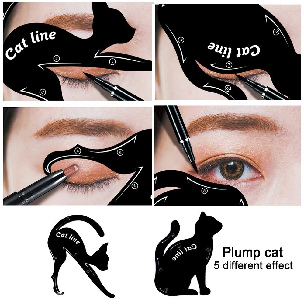 2 шт.компл. трафарет для подводки глаз для глаз Профессиональный инструмент для макияжа кошки простой в использовании макияж для женщин линейка для бровей
