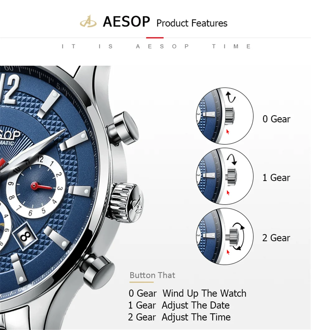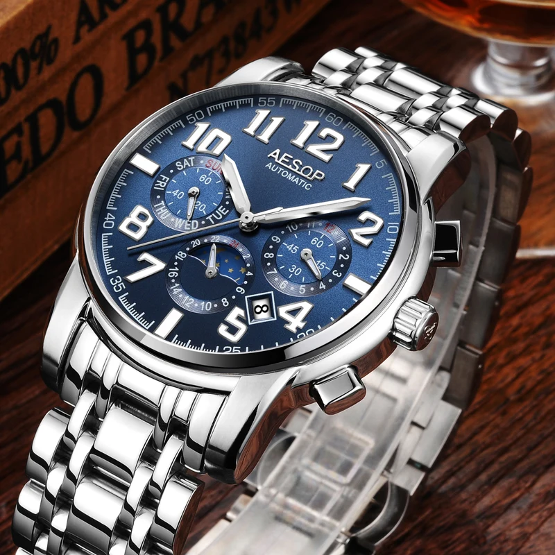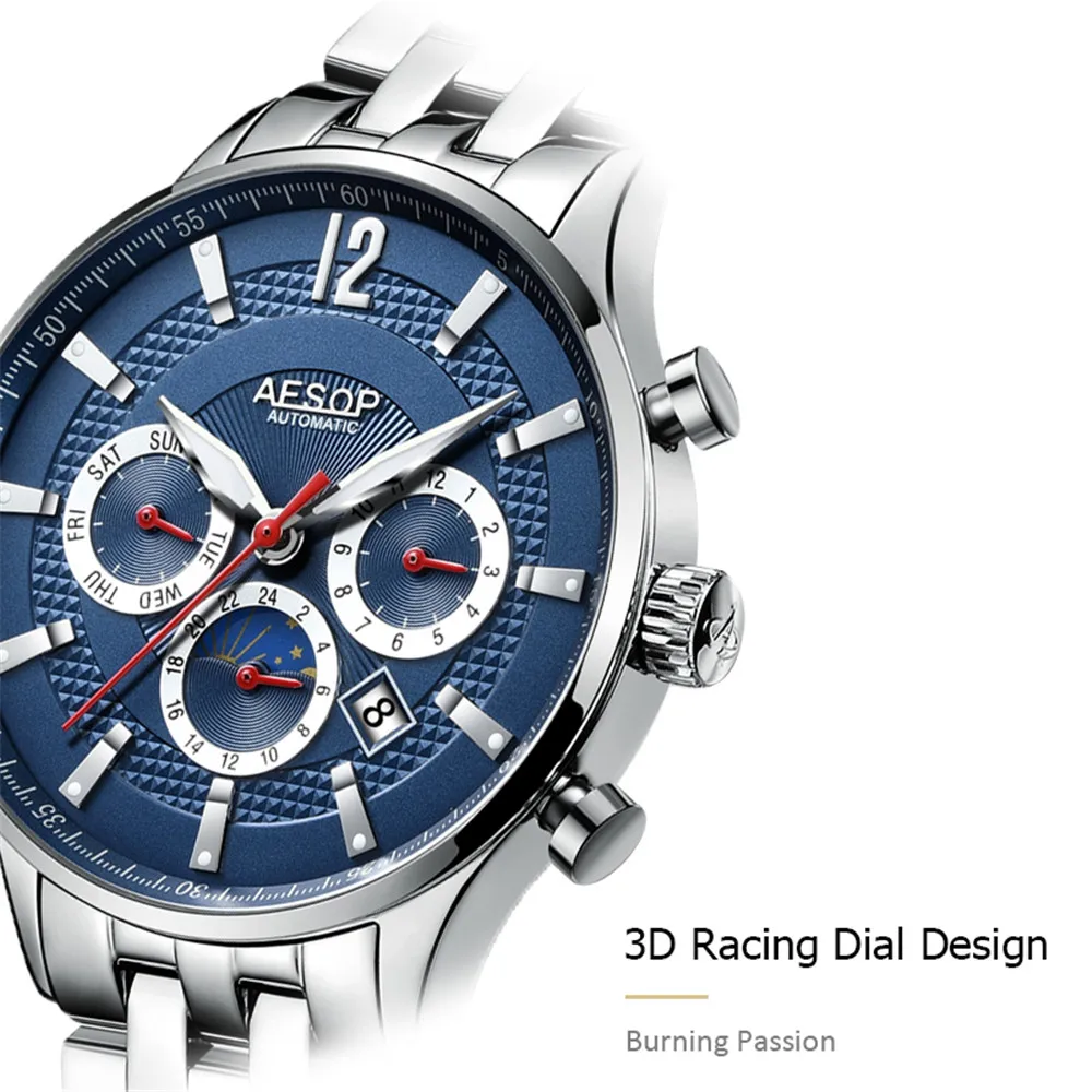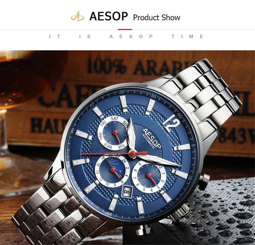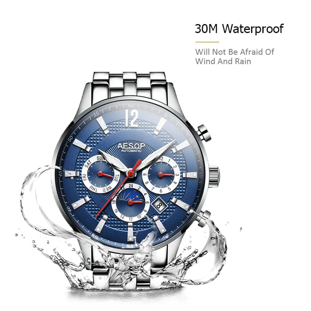 Мужские автоматические механические часы AESOP, деловые водонепрони...