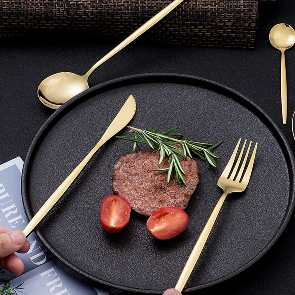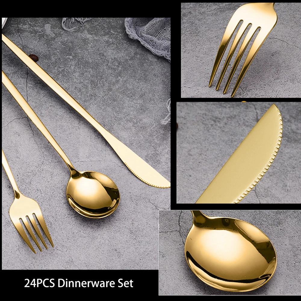 Набор золотых столовых приборов, комплект из 24 приборов из нержавеющей стали, с ножом, вилкой, ложкой, для домашней кухни, для ресторана, подарок