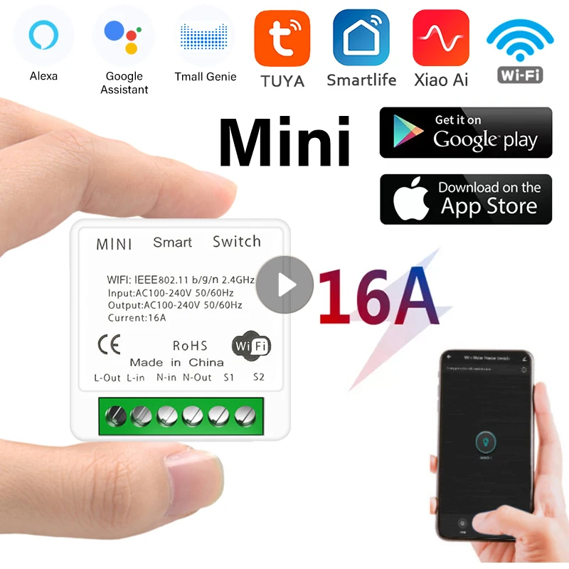 Умный выключатель Tuya 16 А, двухсторонний модуль, дистанционное управление через приложение, Wi-Fi, работает с Alexa Google