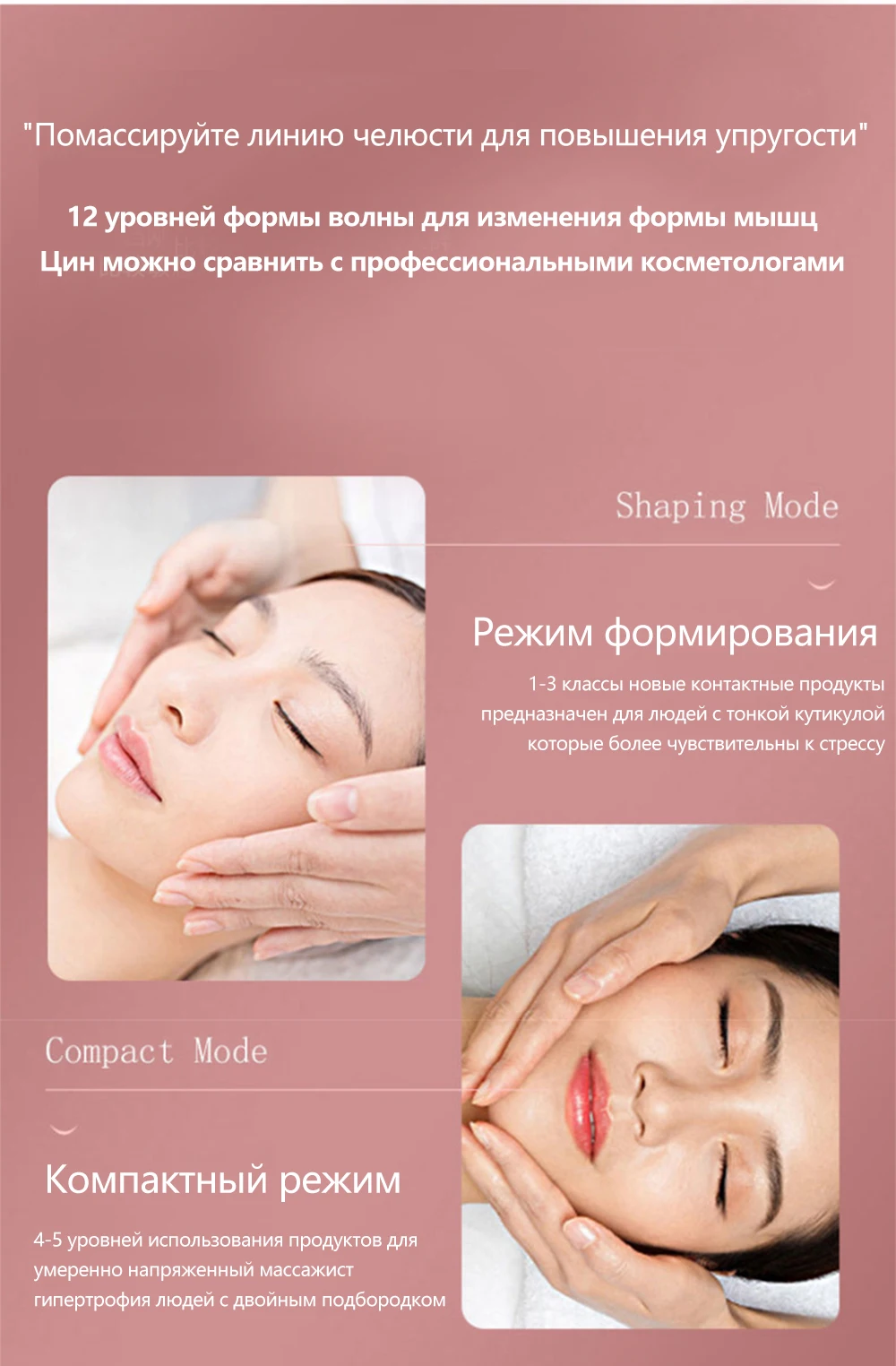 12 видов вибрации скорость массажа, постоянная температура горячего сжатия.1-3 скоростной режим пластичности: подходит для людей с относительно чувствительной кутикулой.4-5 скоростной укрепляющий режим: подходит для людей с умеренной силой массажера мышц жира и двойного подбородка.6-12 скоростной режим подъема: Используйте людей более полугода для закрепления.