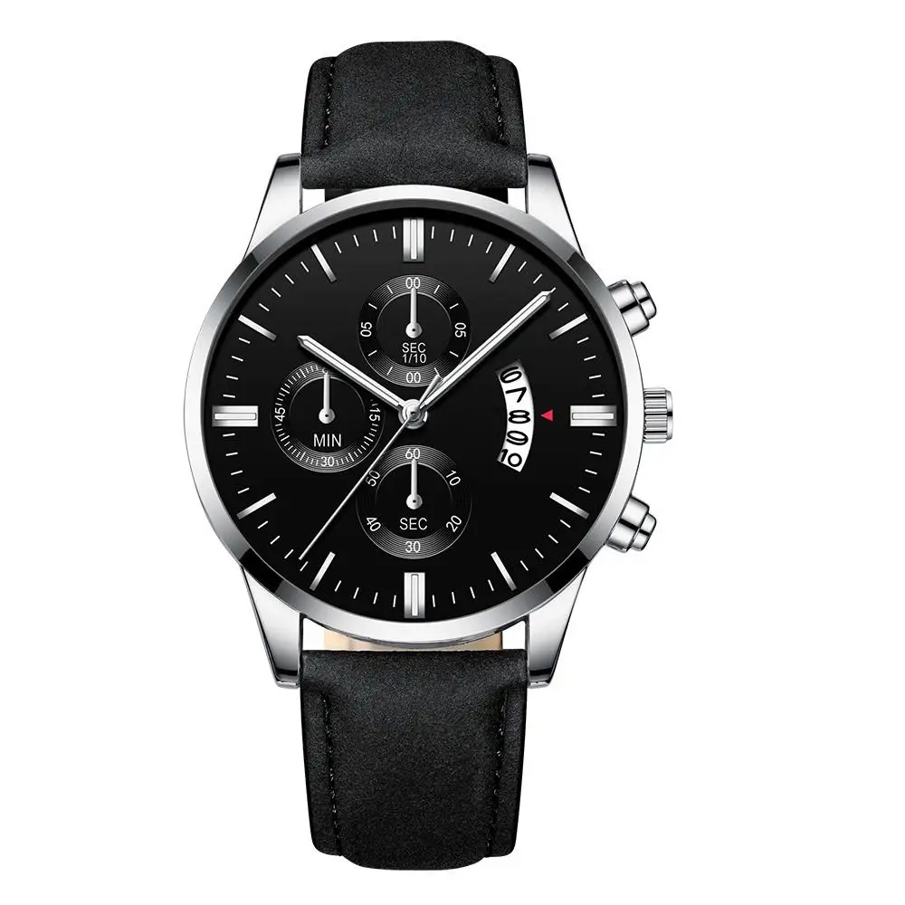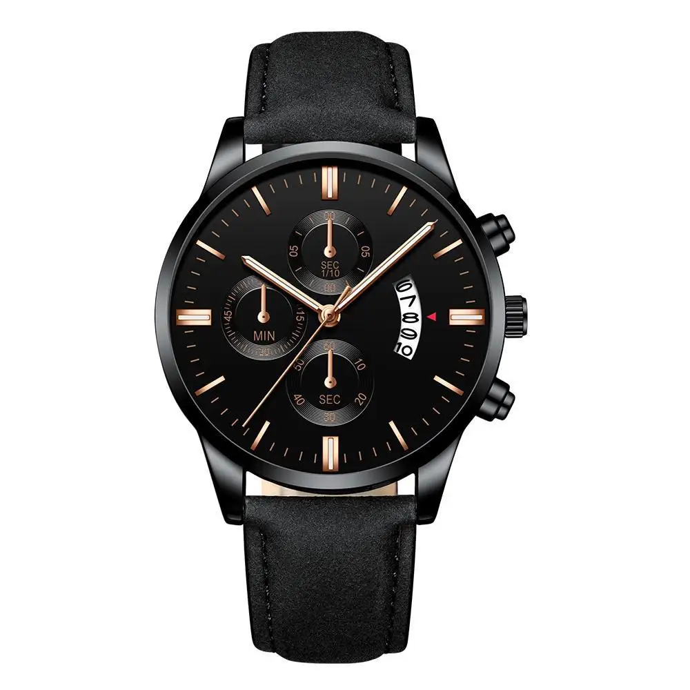 Часы наручные мужские кварцевые с кожаным ремешком, люксовые Деловые в стиле милитари, с календарем, с чехлом из нержавеющей стали
