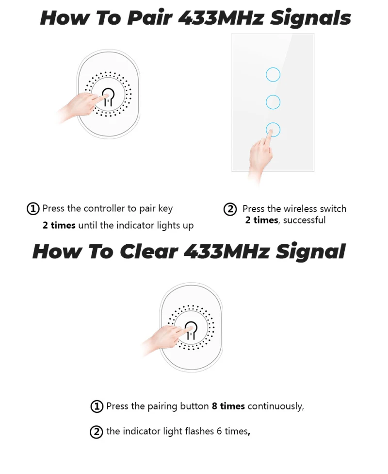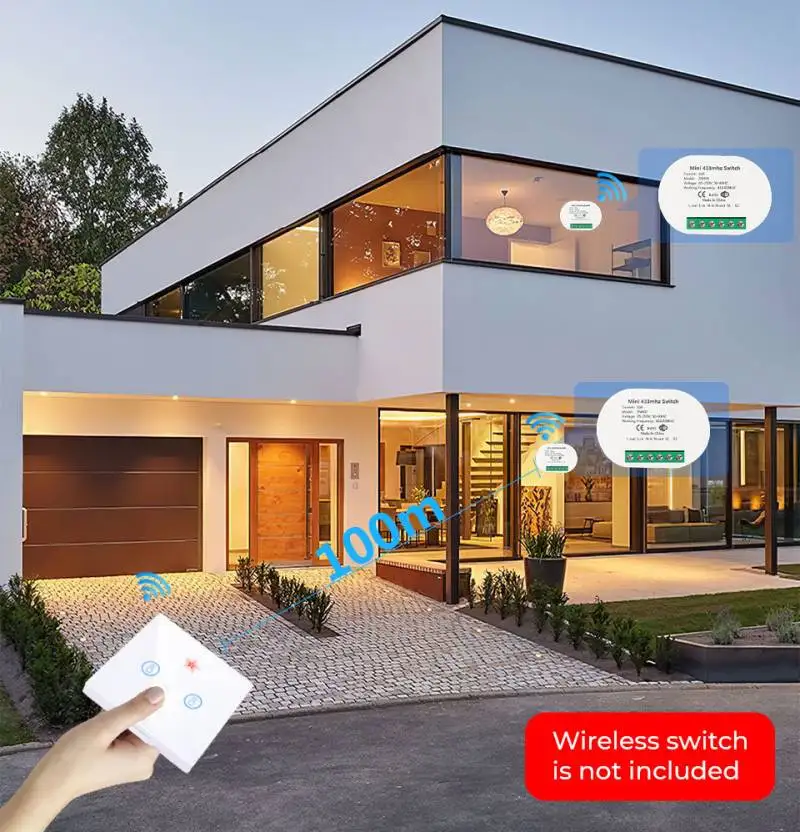 【Поддержка двустороннего управления】 Можно использовать с двухсторонним механическим переключателем перед подключением к дому. Один модуль переключения плюс две беспроводные панели RF433 можно сделать двумя способами s DIY. Вы можете управлять светильник на первом и втором этажах без изменения проводов дома!