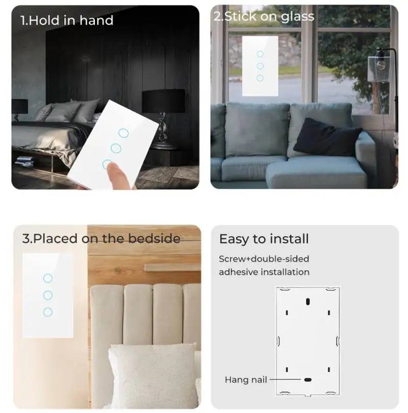 【Пульт дистанционного управления APPПриложение Tuya или smart life может использоваться для удаленного управления включением и выключением. Вы можете увидеть открытое или закрытое состояние переключателей из приложения, когда вы находитесь вдали.
